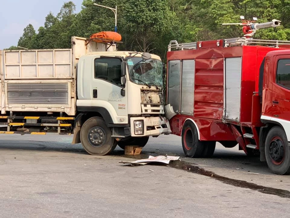 Trên đường đến dập lửa tại công ty gỗ, xe chữa cháy bị tai nạn giữa ngã tư