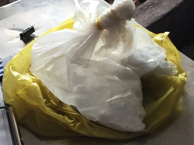 Cụ thể, vựa dừa của bà Trần Thị Hoàng Lan (đường Kha Vạn Cân, khu phố 7, phường Hiệp Bình Chánh) có sử dụng hai loại bột màu trắng pha vào với nước ngâm trắng dừa.
