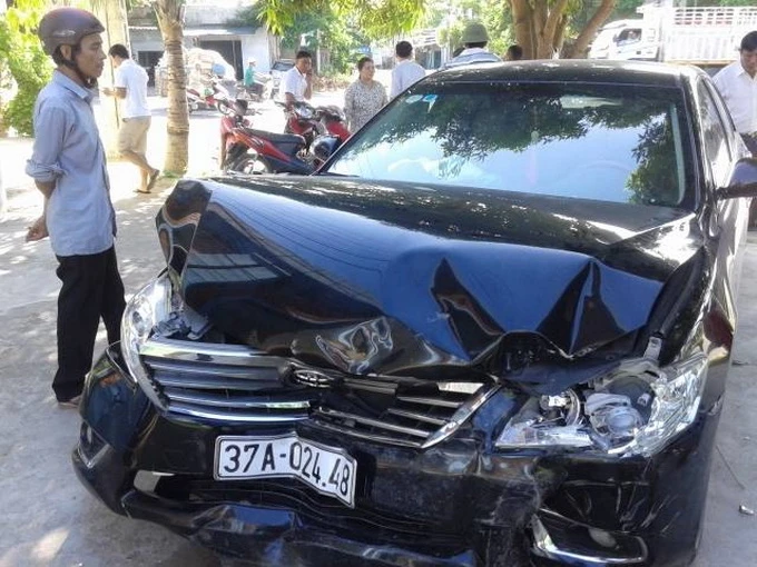 Khi đi qua ngã tư chuẩn bị rẽ ngang đường thì bất ngờ bị chiếc xe hiệu Camry khác mang biển số Nghệ An chạy hướng Quán Hành - Cửa Lò đâm ngang bên phải xe. Cú va chạm mạnh khiến chiếc xe Camry Hà Nội quay ngang đường, nằm ngay ngã tư chợ Sơn.