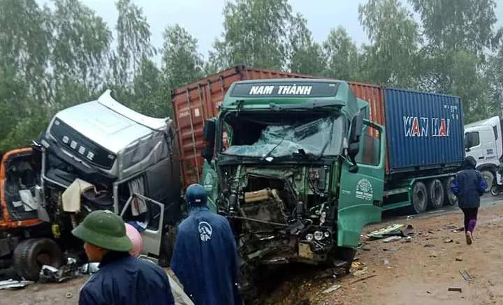 Vụ tai nạn làm hai đầu xe container và xe đầu kéo biến dạng, hai tài xế và người đi xe máy bị thương nặng được đưa đi cấp cứu. Vụ tai nạn khiến ùn tắc giao thông kéo dài khoảng 3 km.
