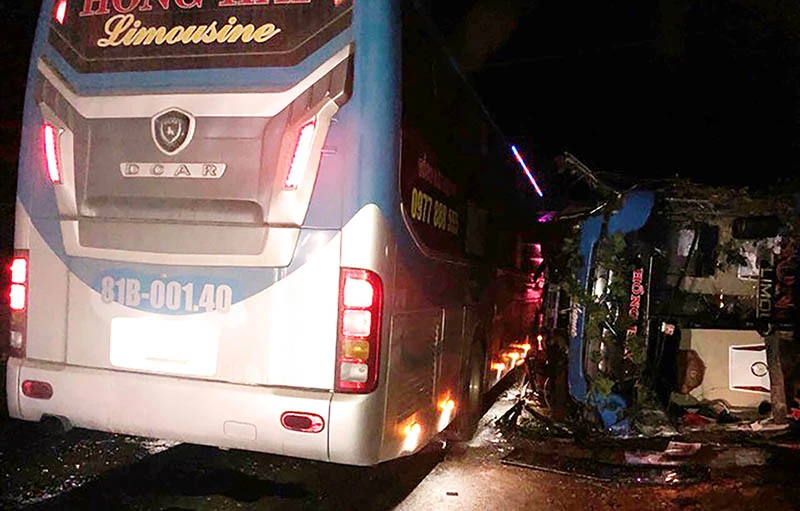 Hai xe khách cùng một chủ xe tông liên hoàn trên quốc lộ 1 đoạn qua tỉnh Bình Định.