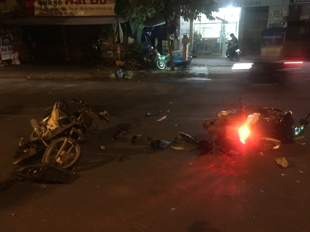 Sau va chạm, cả hai người đều bị thương nặng và người đi đường nhanh chóng đưa đi bệnh viện cấp cứu. Tại hiện trường haixe máy nát vụn.
