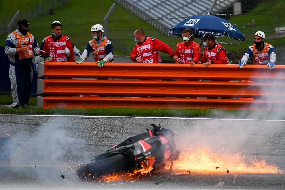 Pedrosa – tay đua vừa trở lại giải MotoGP sau hai năm đã kịp bỏ chạy nhưng Savadori thì được các nhân viên sơ tán bằng cáng, trong khi anh vẫn còn nhận thức rõ ràng vụ việc.