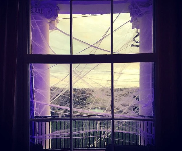 Các khung cửa sổ ở Nhà Trắng được phủ đầy "mạng nhện", chuẩn bị chào đón lễ hội ma. Ảnh: DM