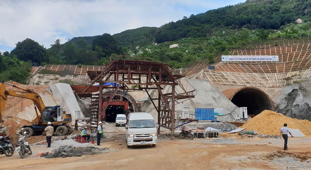 Cửa phía bắc hầm Cù Mông đang thi công các hạng mục cuối. Ảnh: TẤN LỘC