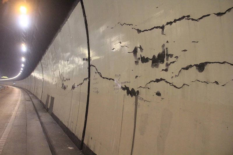 Khu vực hầm đường bộ Hải Vân xuất hiện nhiều vết nứt khiến nhiều người lo lắng. Ảnh: TẤN VIỆT
