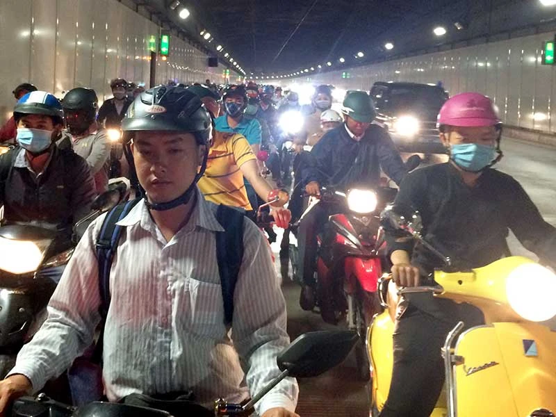 Theo ghi nhận, vào giờ cao điểm sáng, dòng xe lưu thông trên đại lộ, Mai Chí Thọ hướng từ quận 2 đi quận 1 thường bị kẹt từ cách hầm khoảng 1 km. Bên trong hầm, hàng ngàn phương tiện nhích từng chút một. Hầm chỉ dài khoảng 1,5 km nhưng lúc này người đi xe máy phải mất tới 30 phút mới qua được hầm. Nhiều người bất chấp nguy hiểm chạy cả vào làn đường dành cho ô tô để tránh trễ giờ đi làm, giờ học. Phải sau 8 giờ khu vực trước cửa hầm và bên trong mới thông thoáng trở lại.