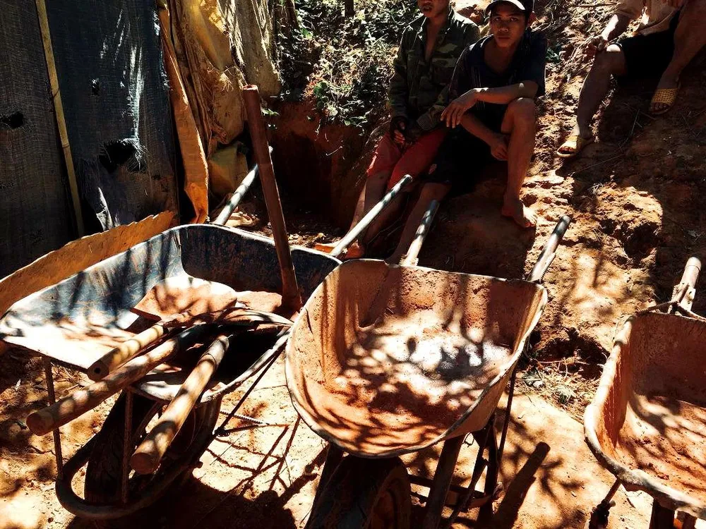 Để tránh bị phát hiện, những người trong nhà cho dựng một chòi canh nằm trên đỉnh đồi và thường xuyên có người cảnh giới. Miệng hầm khai thác vàng được ngụy trang, che giấu trong lán trại. Hầm vàng có chiều ngang 1,1 m, cao 1 m, chiều dài trong lòng đất hơn 100 m.Trong hầm có nhiều ngách ngang cùng nhiều phương tiện khai thác như mâm đãi vàng, xe rùa, máy xay đá...
