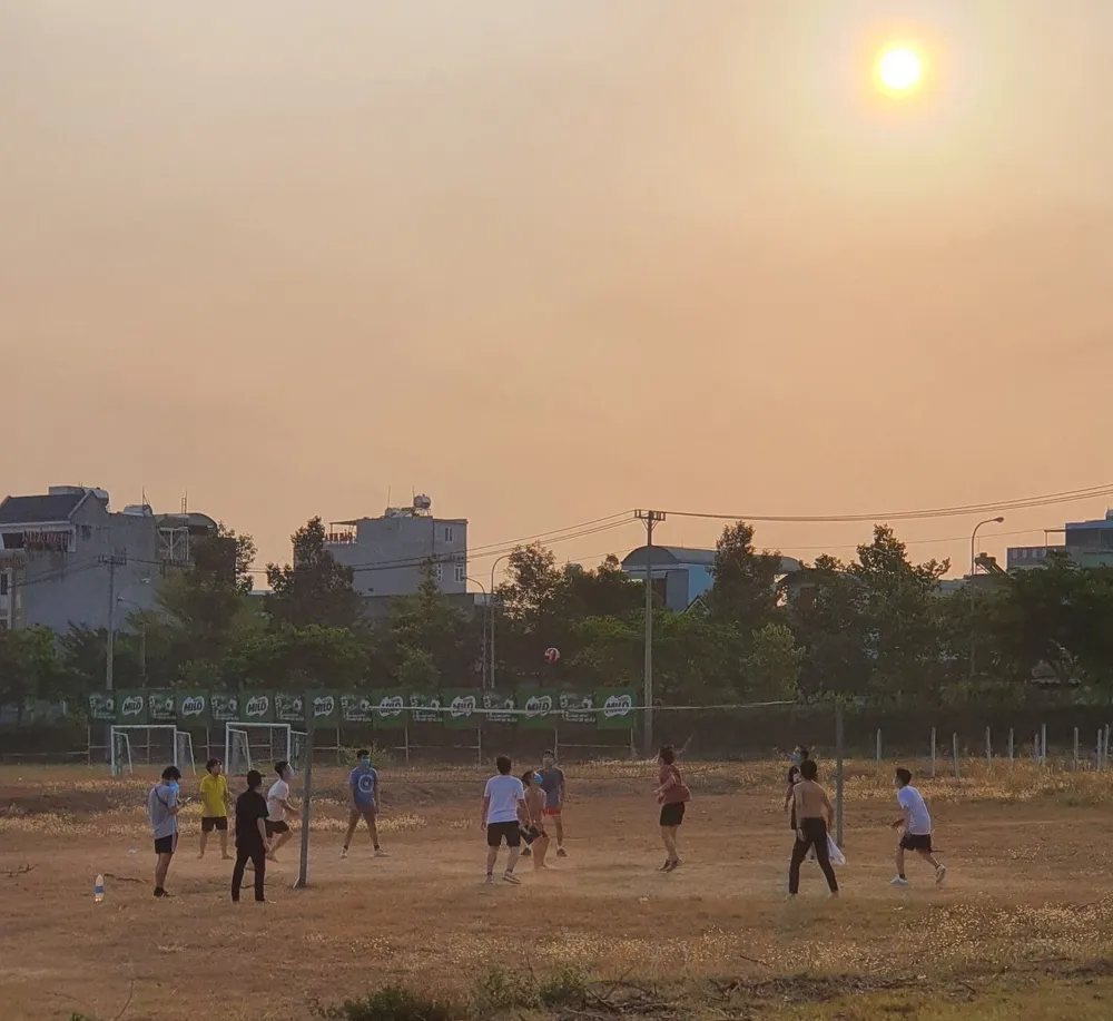 Một số bạn trẻ rủ nhau tụ tập đá banh, trong đó có bạn không đeo khẩu trang. Ảnh: AT