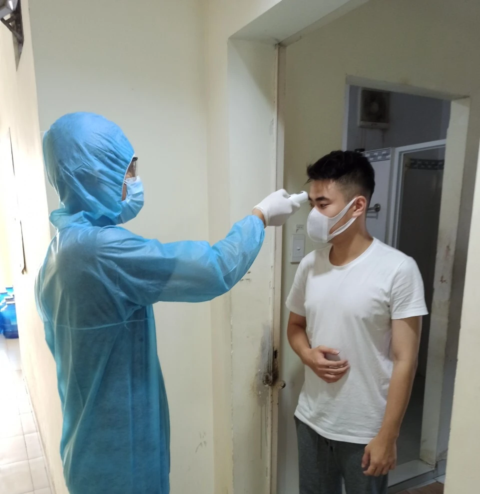 Cùng với 22 nhân viên y tế khác hỗ trợ kiểm tra sức khỏe cho hơn 1.600 người được cách ly tại tòa H1, H2 của khu A ký túc xá ĐH Quốc gia TP.HCM, BS Phạm Ngọc Trung, BV Ung bướu TP.HCM, cho biết nội quy cách ly đã được phổ biến đến từng phòng. Hằng ngày, khi đi đo thân nhiệt, các y, bác sĩ cũng tranh thủ nhắc nhở người được cách ly cố gắng tuân thủ quy định.