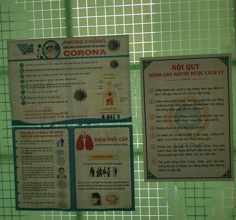 Nội quy khu cách ly ký túc xá ĐH Quốc gia TP.HCM dán trước cửa mỗi phòng khu cách ly ký túc xá ĐH Quốc gia TP.HCM. Ảnh: AT