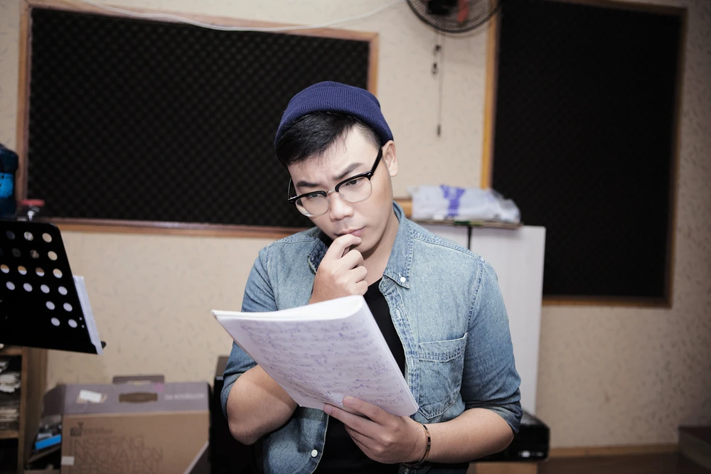 Hamlet Trương tự quay MV tại nhà. Ảnh: Cắt từ MV