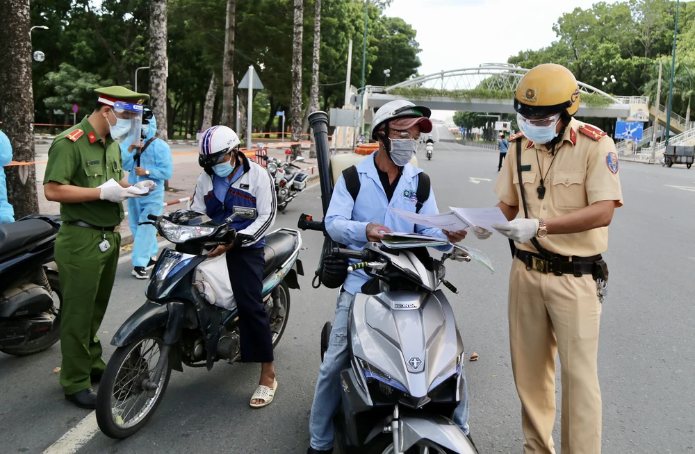 Từ 18 giờ hôm nay, 26-7, TP.HCM thực hiện việc hạn chế tối đa người dân ra đường. Các lực lượng chức năng đã lập chốt, kiểm tra việc ra đường của người dân.