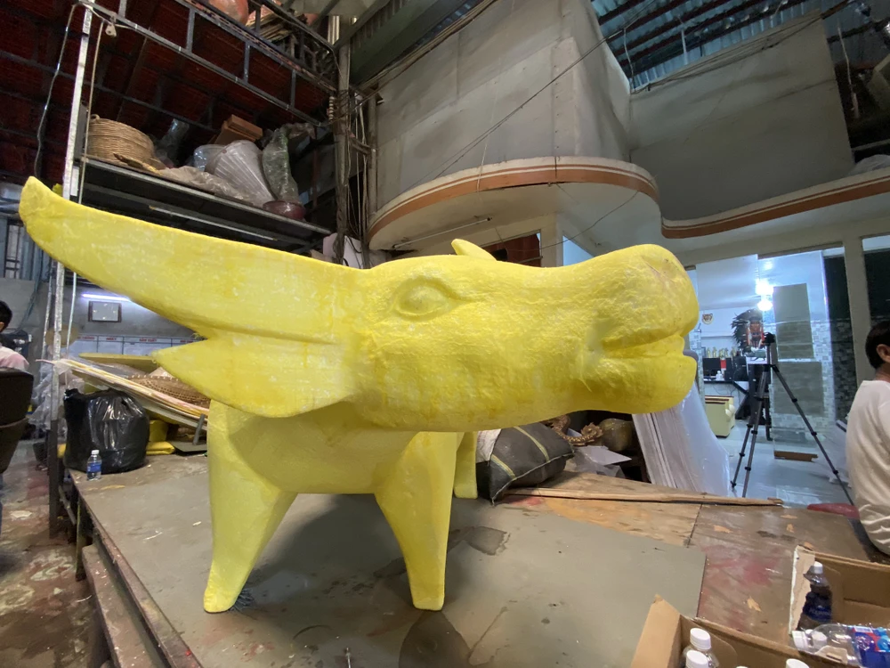 Một xưởng sản xuất tạo hình linh vật trâu cho đường hoa Nguyễn Huệ Tết Tân Sửu.