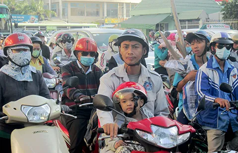 Dòng xe đổ từ khu vực quận Thủ Đức, Bình Thạnh vào trung tâm TP gây ùn ứ ở đường Đinh Bộ Lĩnh - gần khu vực Bến xe Miền Đông.
