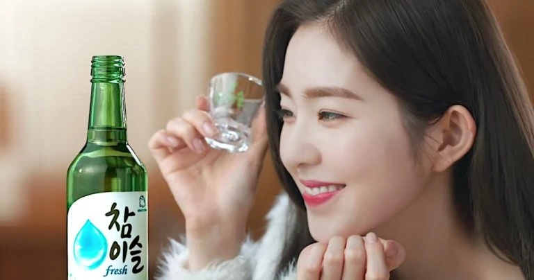 Ca sĩ Irene của nhóm nhạc Red Velvet và chai rượu soju Chamisul. Ảnh: The Drinks Business