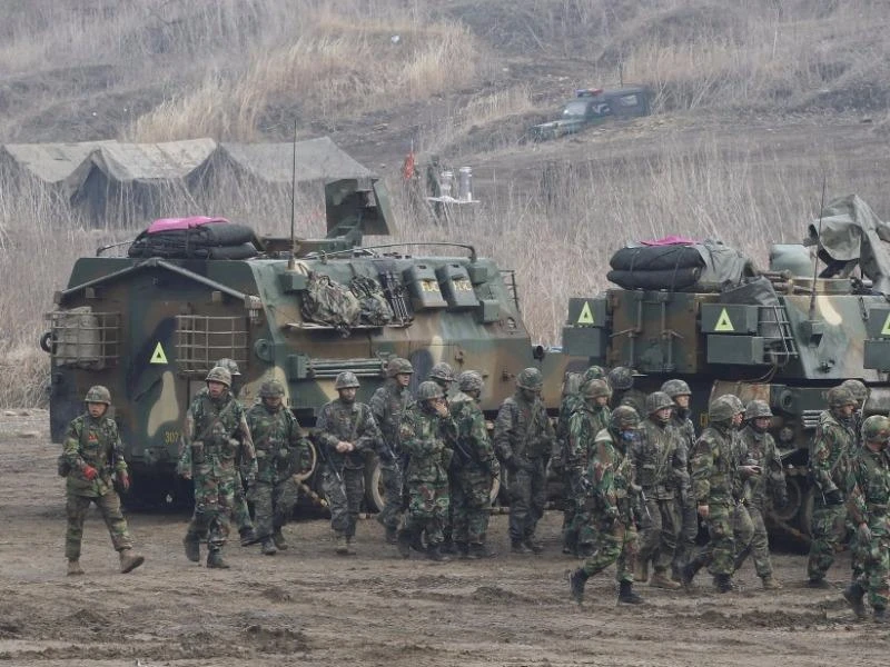 Binh sĩ Hàn Quốc tham gia một cuộc tập trận giả định đối phó Triều Tiên tấn công. Ảnh: AP