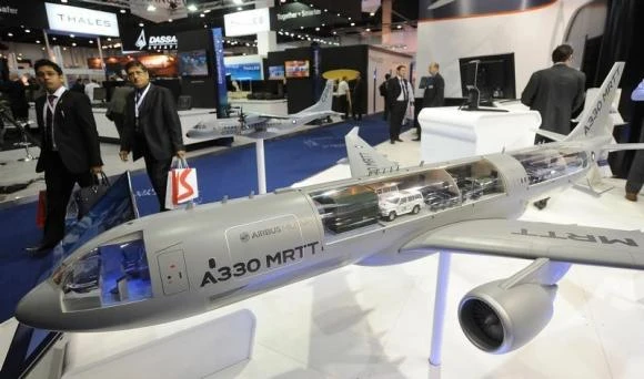 Mô hình máy bay Airbus A330 MRTT được trưng bày. Ảnh: Reuters