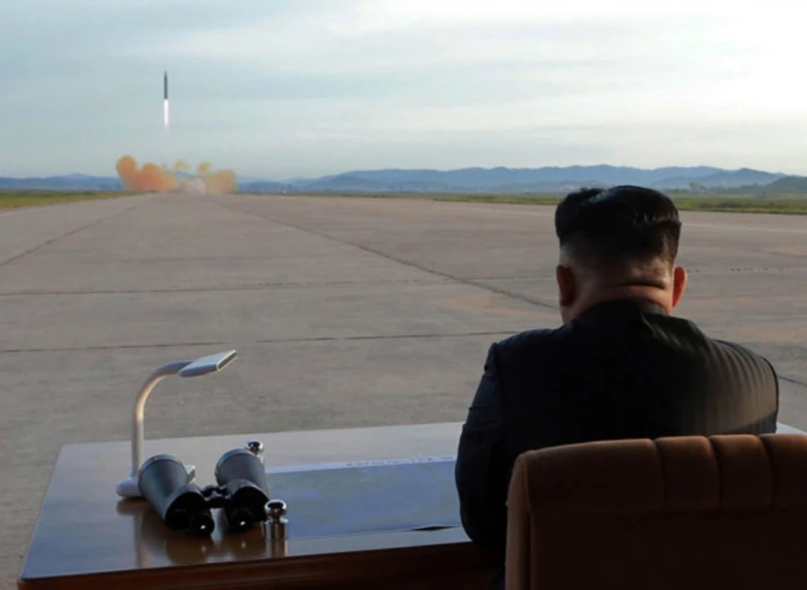 Hình ảnh lãnh đạo Triều Tiên Kim Jong-un quan sát một vụ phóng tên lửa do hãng KCNA công bố ngày 15-9. Ảnh: KCNA