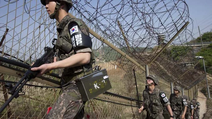 Lính Hàn Quốc tuần tra ở biên giới liên Triều - Ảnh: Reuters