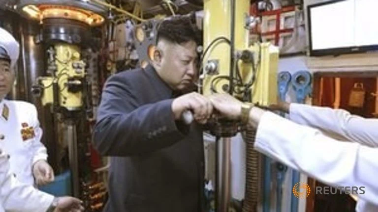 Lãnh đạo Triều Tiên Kim Jong Un nhìn qua một kính tiềm vọng của một tàu ngầm khi tiến hành giám định Đơn vị Hải quân 167 của Quân đội nhân dân Triều Tiên (KPA)