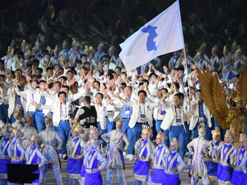 Sau sự kiện hai quốc gia chung một lá cờ tại đêm khai mạc ASIAD, Hàn Quốc, Triều Tiên đã tiến đến một bước mới là cùng nhau chạy đua đăng cai Olympic. Thể thao đã gắn kết hòa bình. Ảnh: GETTY IMAGES