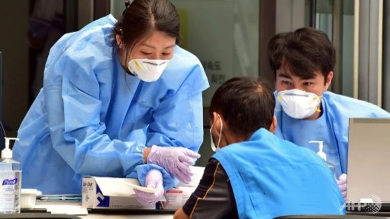 Các nhân viên y tế Hàn Quốc xét nghiệm các trường hợp nghi nhiễm dịch MERS (ảnh: AFP)