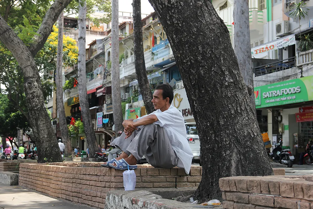 Anh Tấn ngồi nghỉ mệt dưới gốc một cây cổ thụ. Anh cho biết: "Việc làm tuyến metro này phải đốn hạ khá nhiều cây xanh, rồi rào chắn xây dựng. Người dân chúng tôi chấp nhận nhiều thiệt hại nhưng mong sao cho nó sớm hoàn thành, kéo dài cũng lâu rồi".