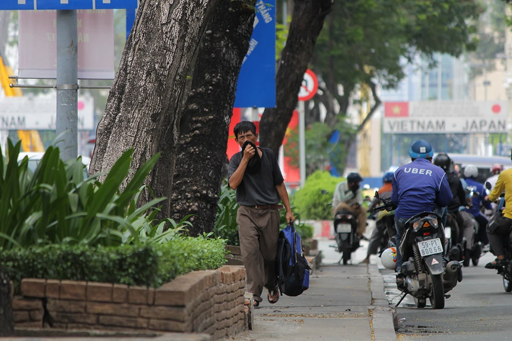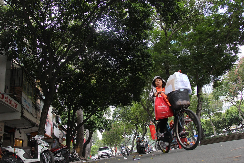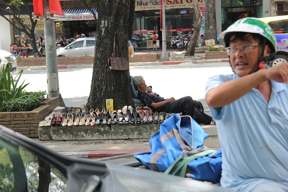 Người dân TP mưu sinh dưới bóng mát cây xanh trên đường Lê Lợi.