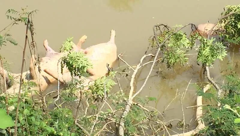 Heo chết vứt xuống sông Đào vào đầu tháng 10-2019.