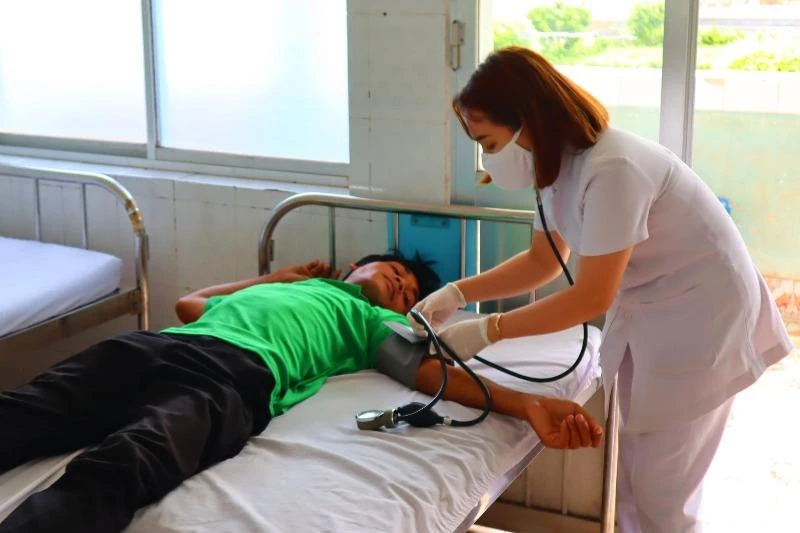 Công nhân được điều trị tại Trung tâm y tế huyện Chơn Thành vào ngày 24-7. Ảnh: KD