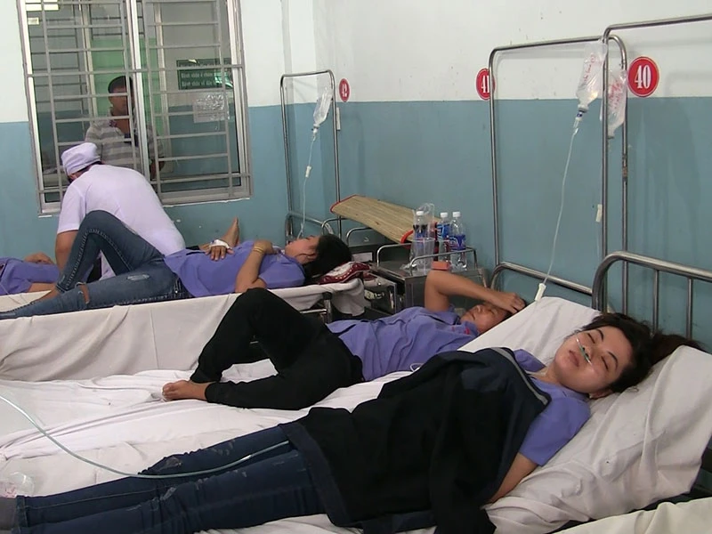 Theo các bác sĩ ở bệnh viện, các công nhân nhập viện với các triệu chứng đau đầu, chóng mặt, hoa mắt, tê tay chân, một số ít có biểu hiện co giật và buồn nôn. Phần đa các công nhân đều là nữ.