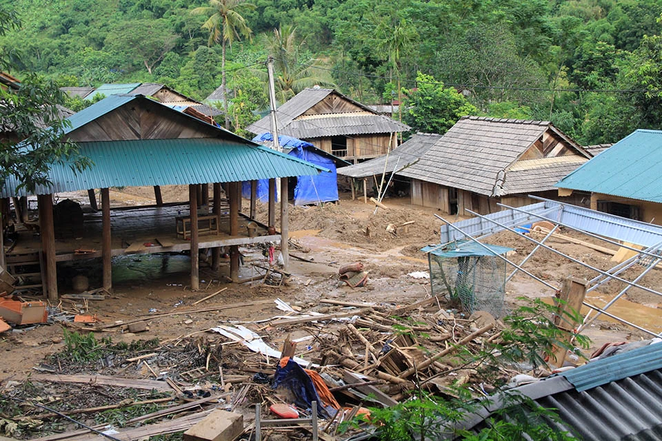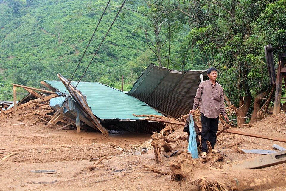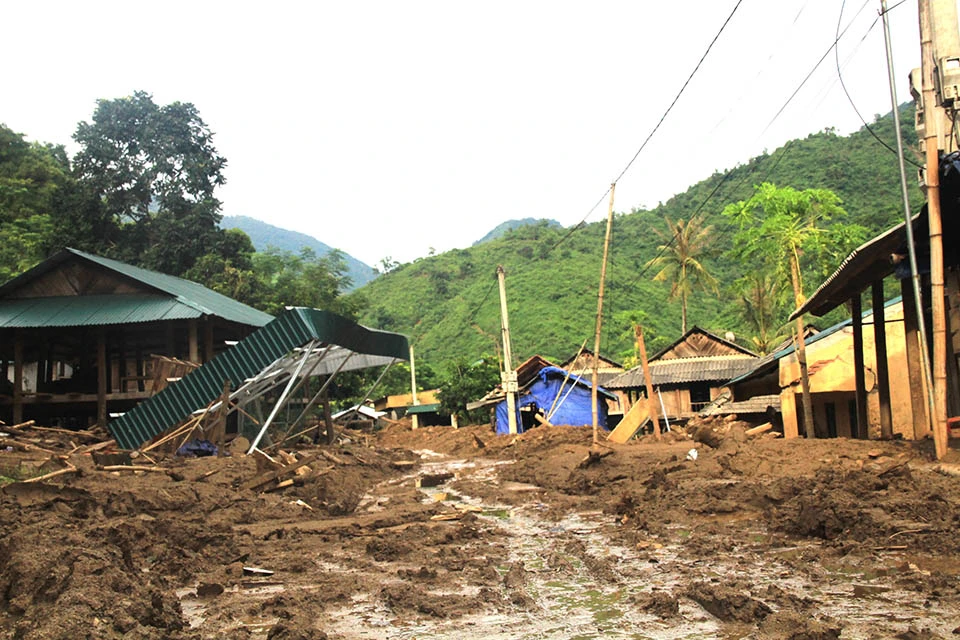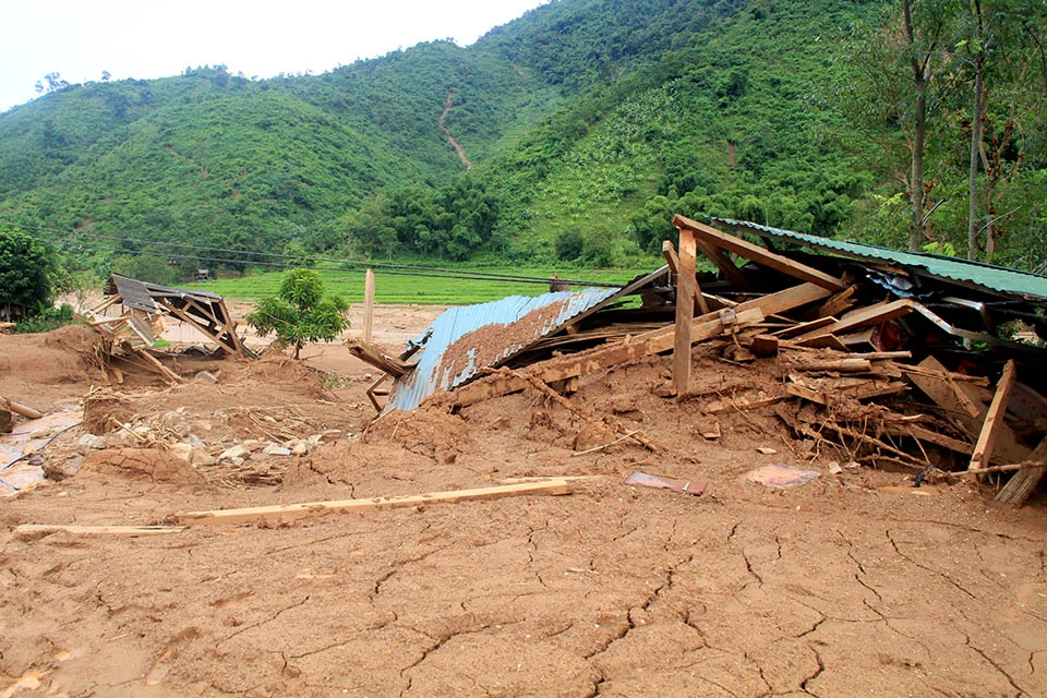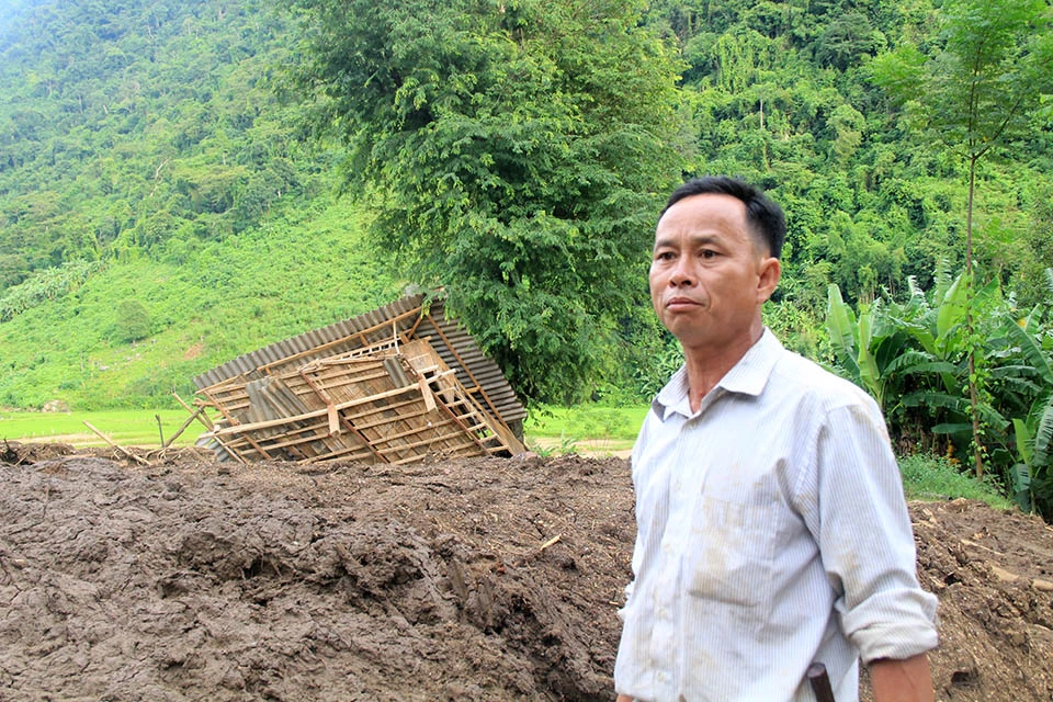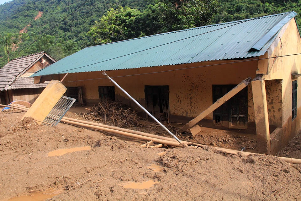 Hơn 400 người dân nơi đây vẫn đang phải tá túc khắp nơi trong huyện vì không còn nhà để về hoặc bị mất tài sản, nhà hư hỏng, bùn ngập sâu, chưa biết khi nào họ mới khắc phục để trở lại cuộc sống vốn dĩ bình yên dưới đỉnh Sài Khao. Ảnh: Đ.TRUNG