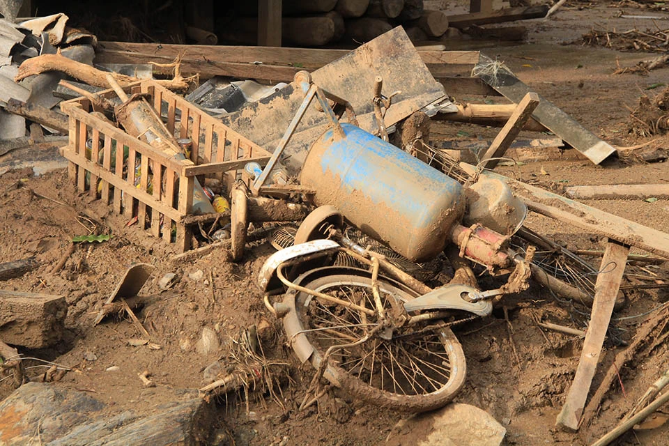 Những thứ còn sót lại sau lũ dữ kinh hoàng xảy ra vào chiều 30-8, nhiều người dân chỉ kịp tháo chạy, không kịp mang theo tài sản. Ảnh: Đ.TRUNG