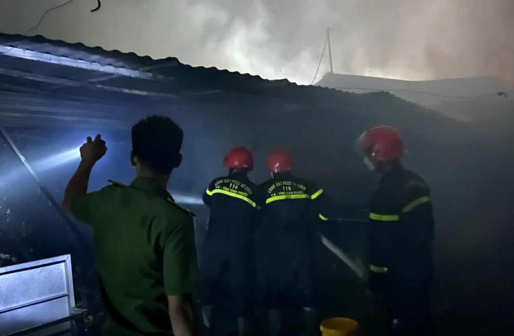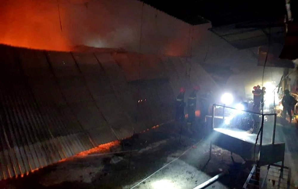 Ngọn lửa lớn bao trùm hàng chục căn kiot, khói đen bao trùm cả khu vực lớn. Đến gần sáng 18-3, ngọn lửa mới được lực lượng chữa cháy dập tắt.
