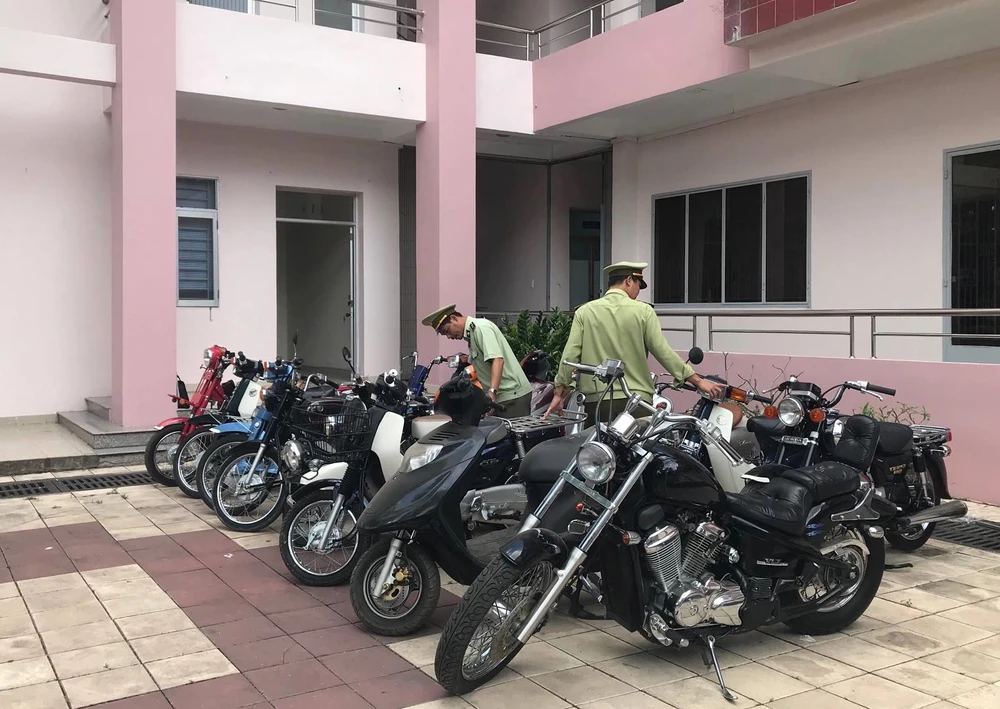 Trong đó có hai xe có biển số, 14 xe không có biển số của nhiều thương hiệu như: Honda, Yamaha, Suzuki, Verde, Pallet.