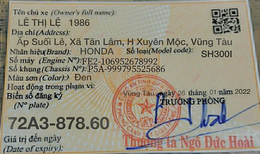 Một cà vẹt xe được làm giả các thông tin và gửi cho nạn nhân. Rất nhiều người không thể phân biệt và mắc bẫy.