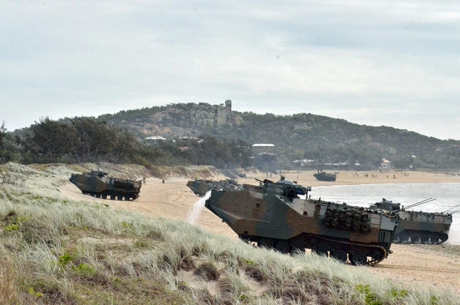 Lữ đoàn Đổ bộ Triển khai nhanh của Nhật thực hành đổ bộ bãi biển trong cuộc tập trận Talisman Sabre tại Úc năm 2019. Ảnh: SETH ROBSON