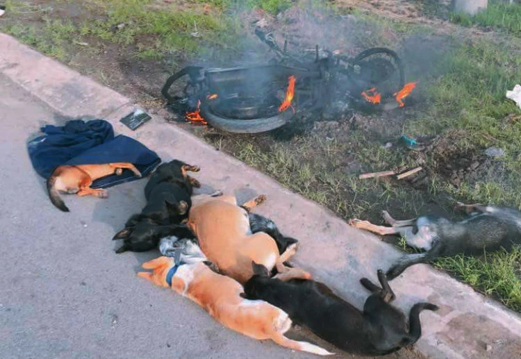 Vì bức xúc thời gian gần đây khu vực bị mất nhiều chó nên người dân đã xông vào đánh khiến hai “cẩu tặc” nằm bất động. Không dừng lại đó, người dân còn đốt xe của kẻ trộm chó.