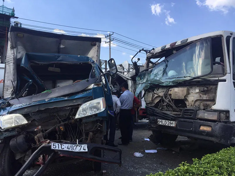 Cú tông mạnh khiến xe tải lao tới húc vào xe tải mang biển số 51C-497…, làm xe này lệch hướng qua trái, tông vào đuôi xe ben biển số 60C-160… tạo thành chuỗi va chạm liên hoàn giữa bốn phương tiện.