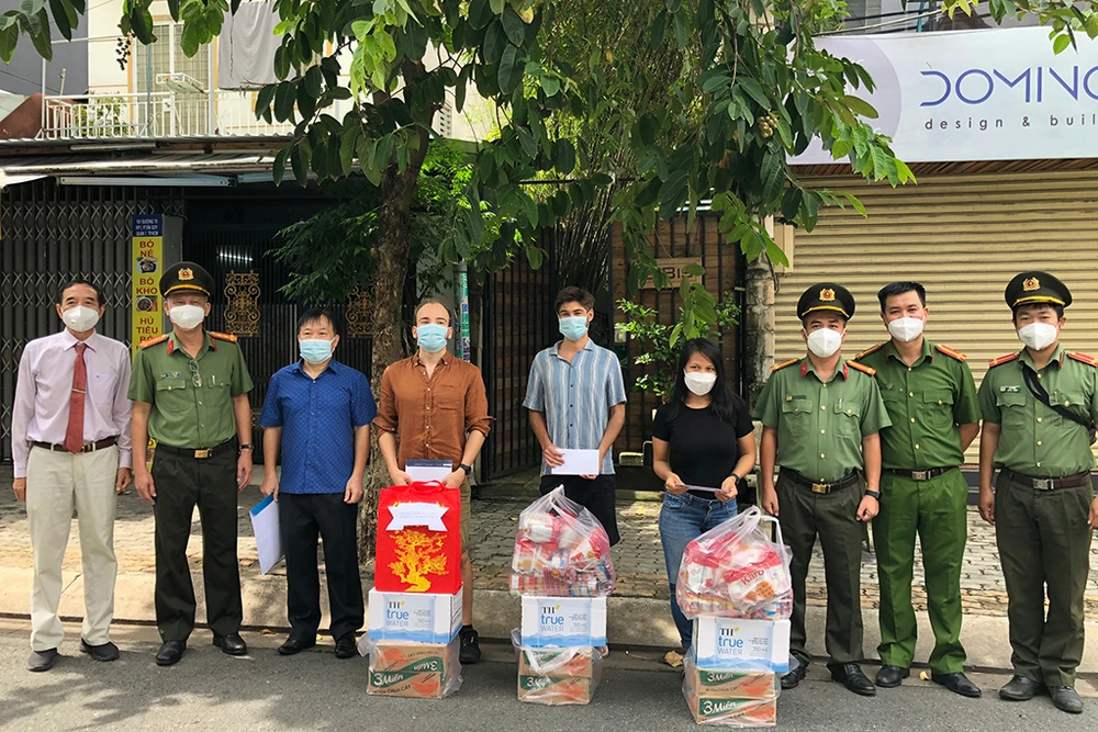 Công an TP.HCM thăm hỏi, động viên những người nước ngoài vượt qua đại dịch. Ảnh: KM