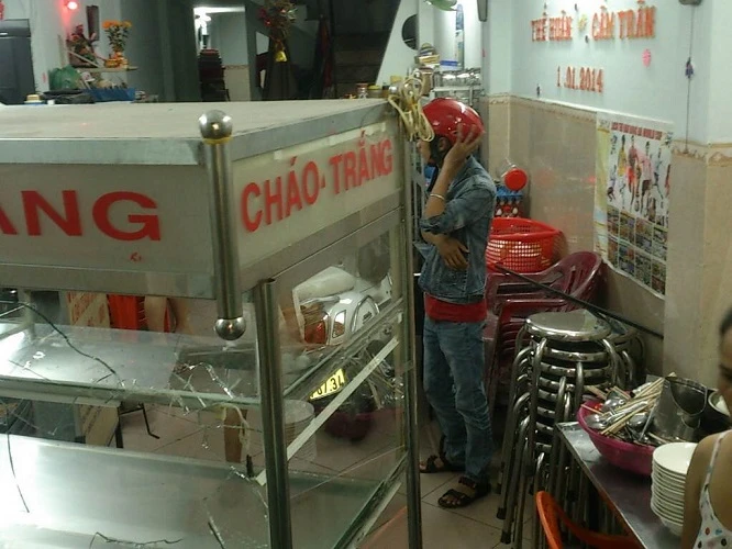 Những dấu vết do nhóm thanh niên dùng hung khí gây ra