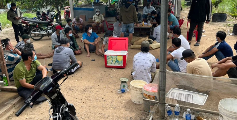 Công an huyện Hóc Môn, TP.HCM ập đến bãi đất trống, phát hiện hàng chục người đang sát phạt bằng hình thức đá gà. Ảnh: NT