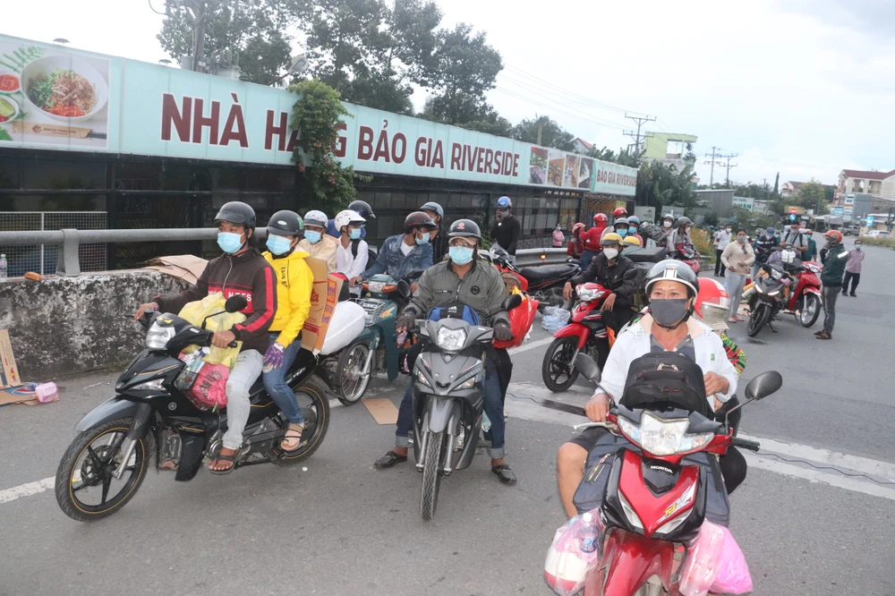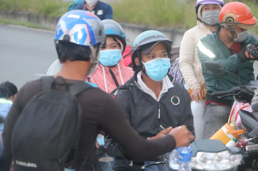 Khoảng 18 giờ, tình trạng ùn ứ cơ bản được giải quyết, những người dân tự ý về được hướng dẫn đến chốt khai báo y tế và được dẫn đường tiếp tục hành trình về quê.