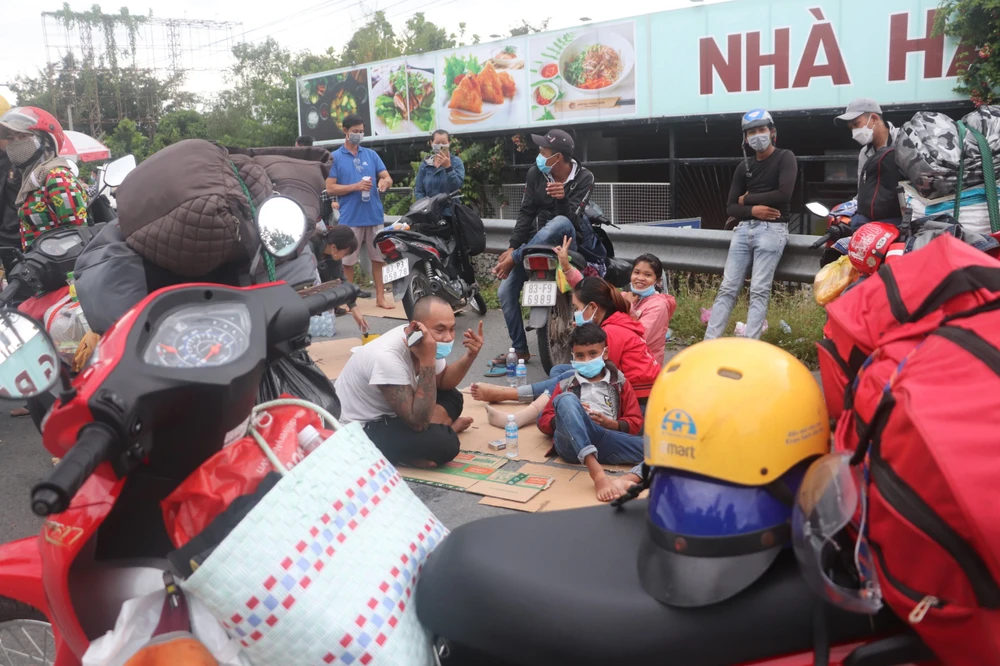 NHững người tự chạy xe máy về quê cho biết chỉ mong về được quê để tránh dịch