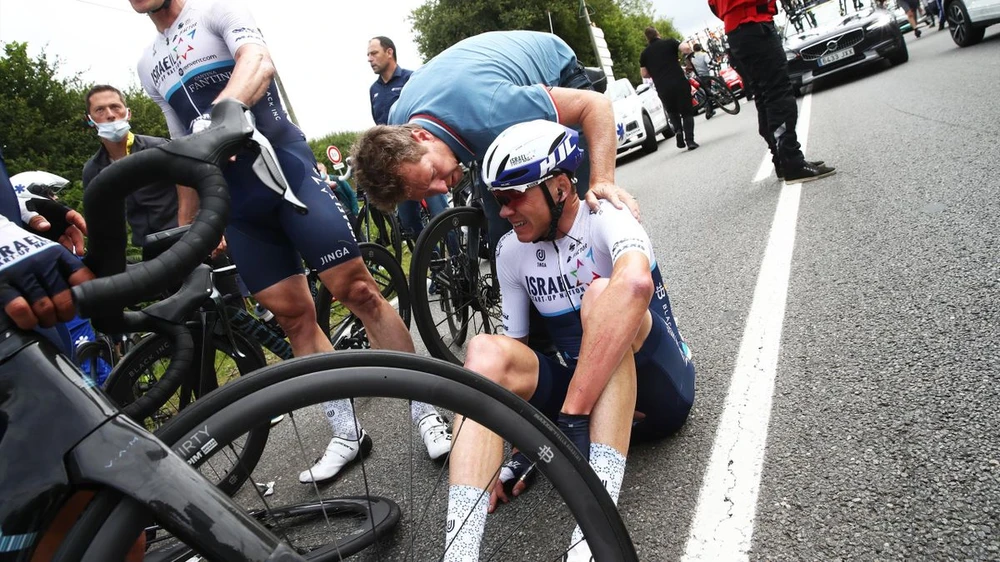 Trước đó, một vụ va chạm dẫn đến té ngã của hoảng 40 tay đua đã xảy ra tại chặng đua xuất phát từ Brest đến Landerneau (dài 197,8 km), cách mức đến khoảng 45 km.