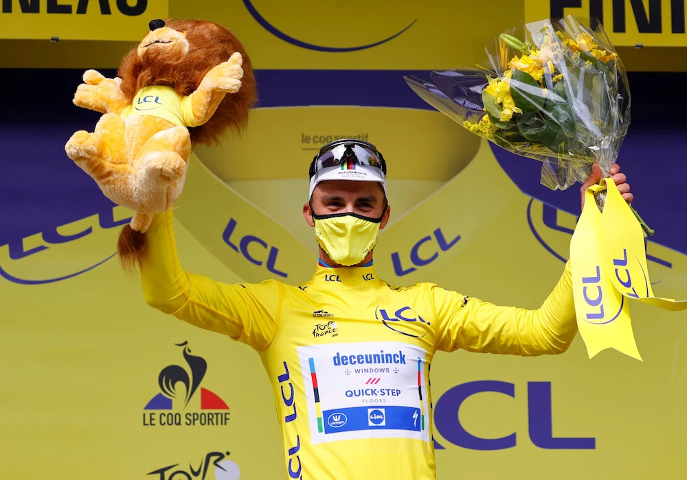 Áo vàng sau chặng một thuộc về Alaphilippe. ẢNH: REUTERS