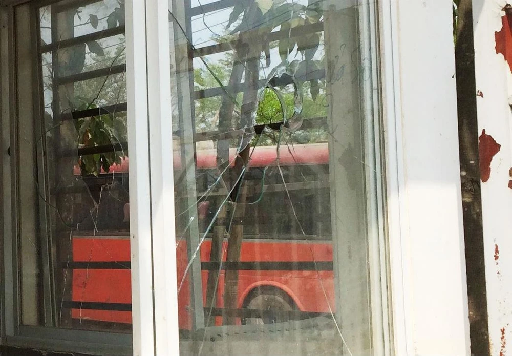 Nhiều cửa kính của công ty bị đập vỡ.