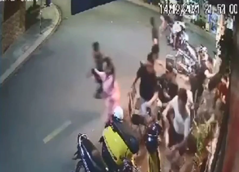 Theo camera an ninh ghi lại, gần 22 giờ ngày 14-12, nhóm khoảng 10 thanh niên nam nữ ngồi tại một quán cà phê nằm trên đường Võ Thị Sáu (phường Đông Hòa, TP Dĩ An).