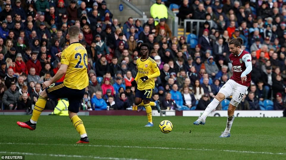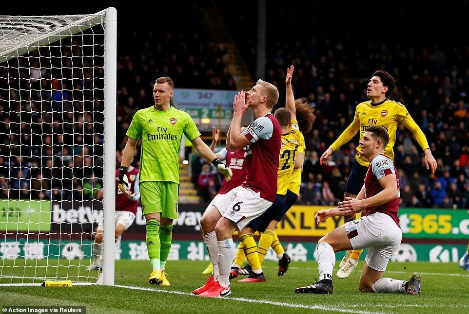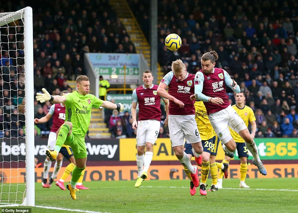 Burnley chủ động lui đội hình về phòng ngự để cầm chân "Pháo thủ" trong hiệp 1.